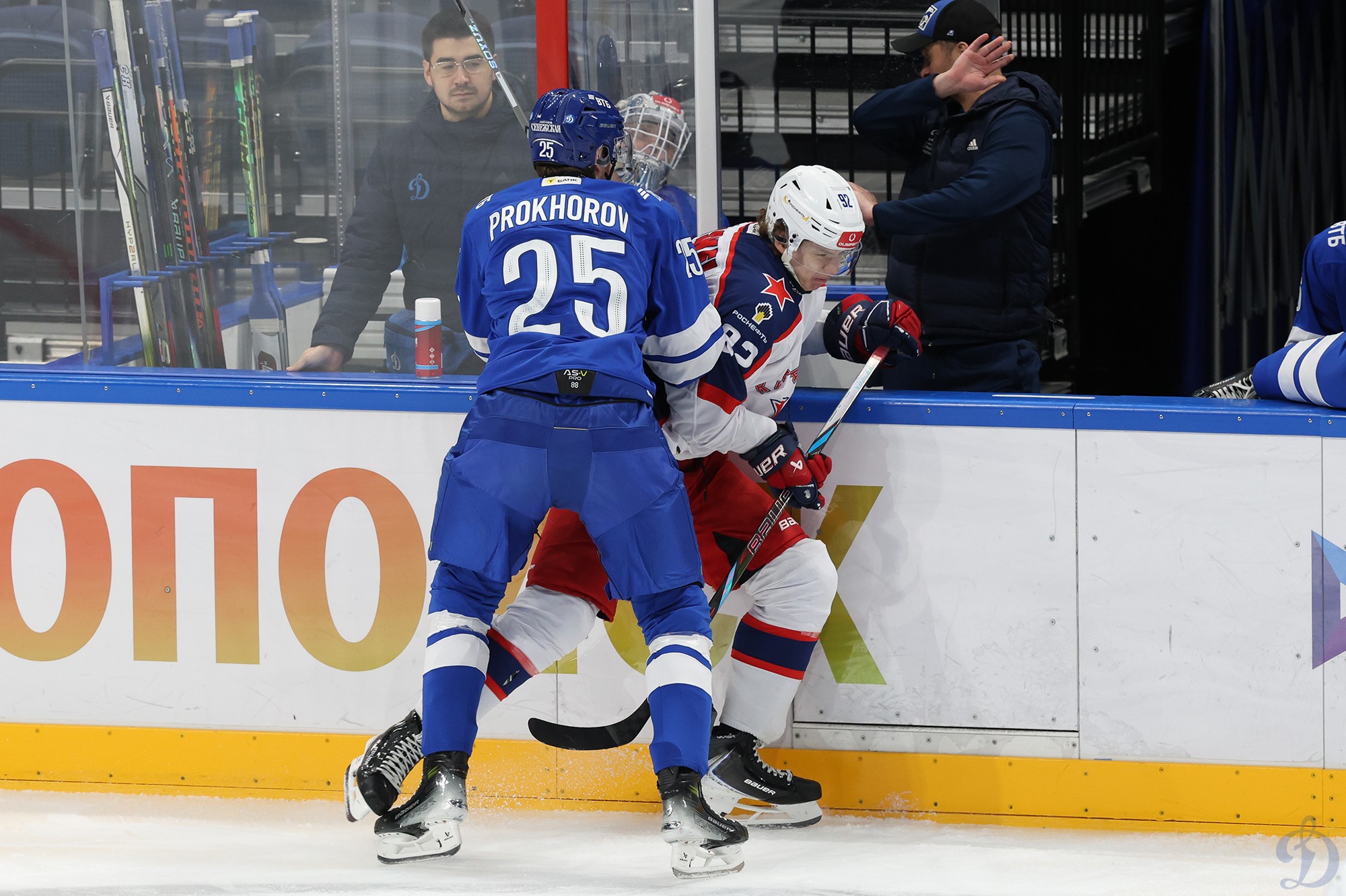 Динамовцы ответили своей, чудесной по красоте, атакой, которая и завершилась шайбой в исполнении Ивана Архипова. Команды ушли на первый перерыв с боевыми 1:1 на табло.