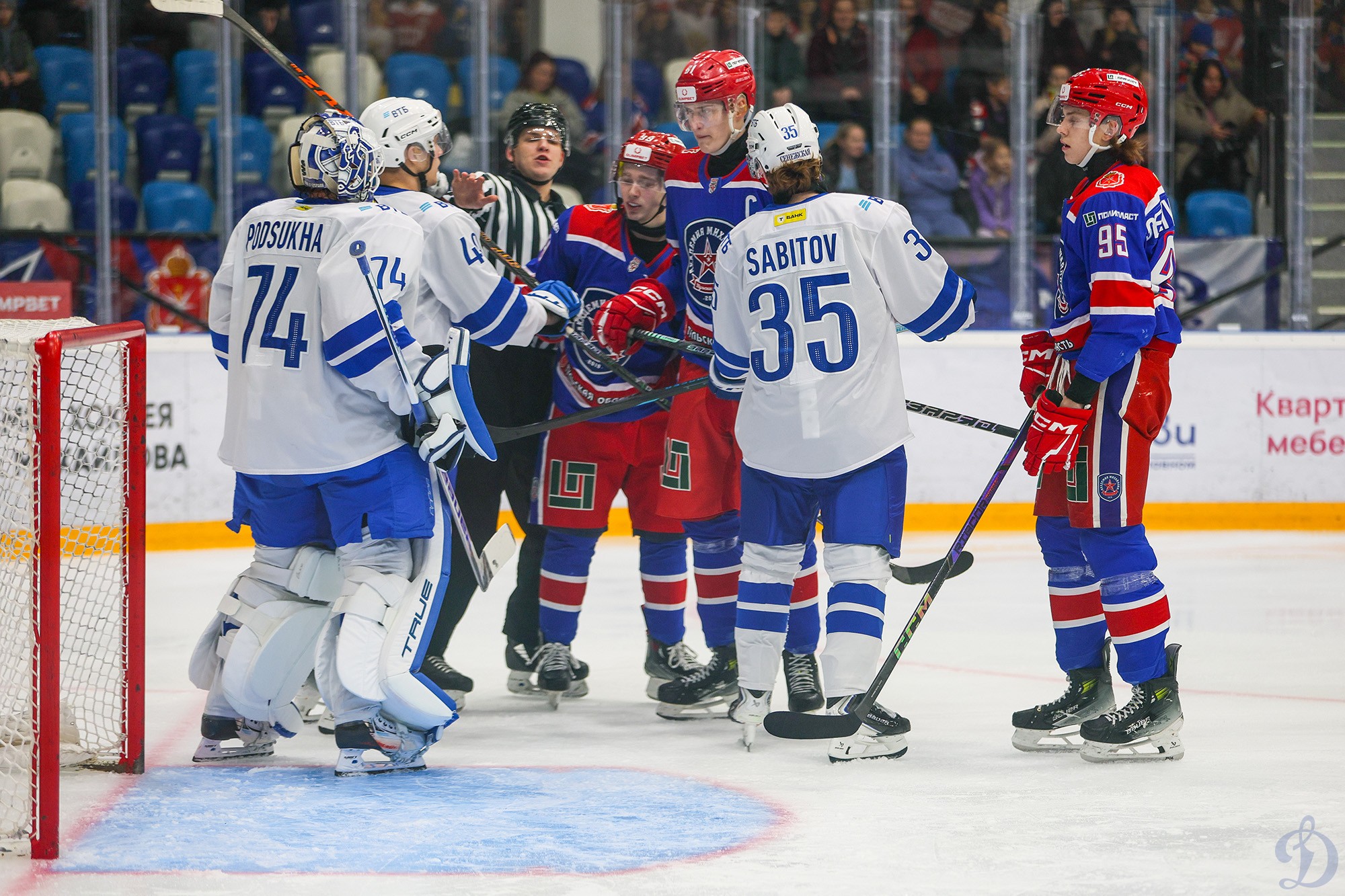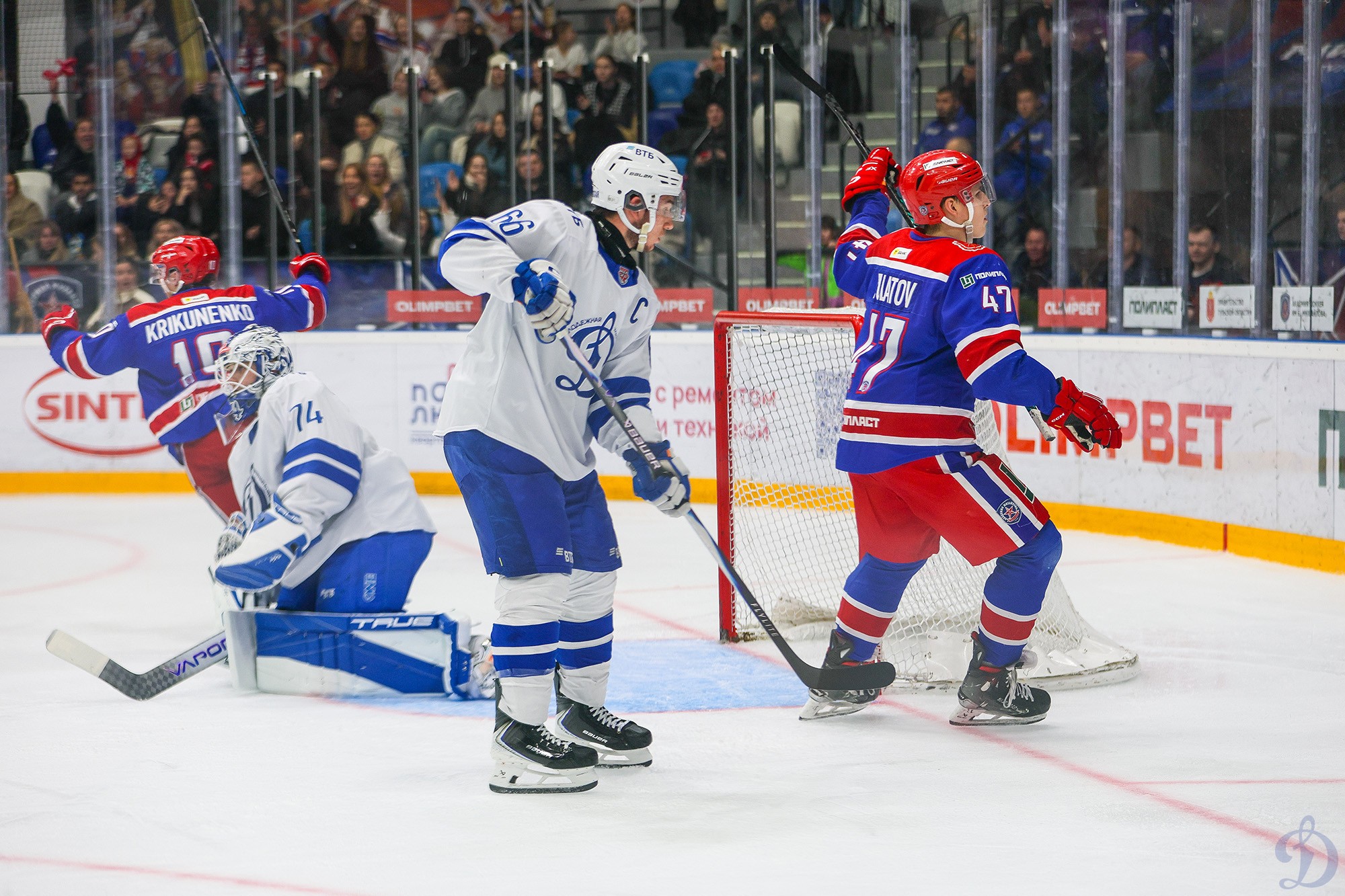 Шайба в ворота гостей все же попала, когда Никита Вахрушев точно попал в левый верхний угол ворот бело-голубых. Случилось это за полторы минуты до сирены на первый перерыв.
